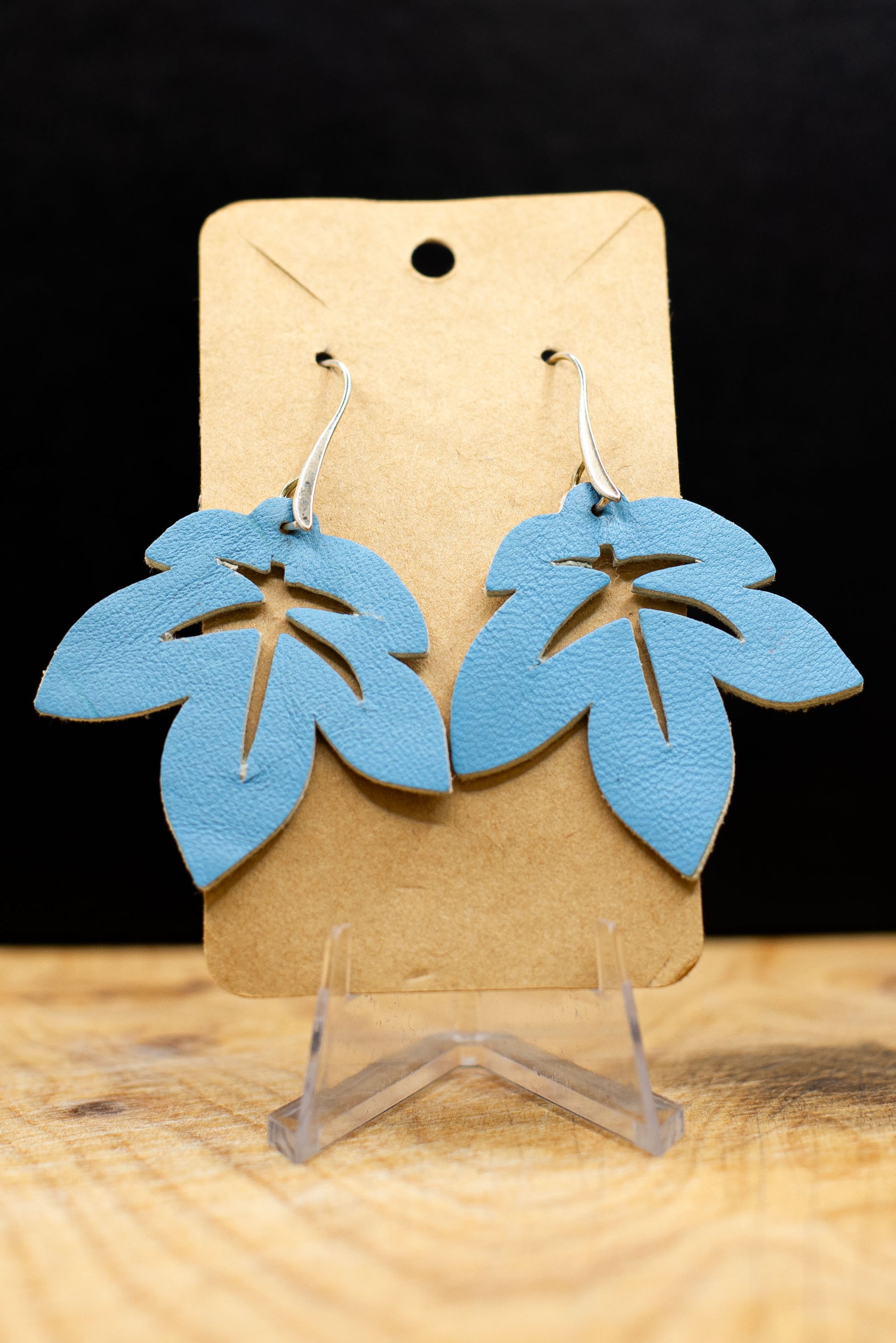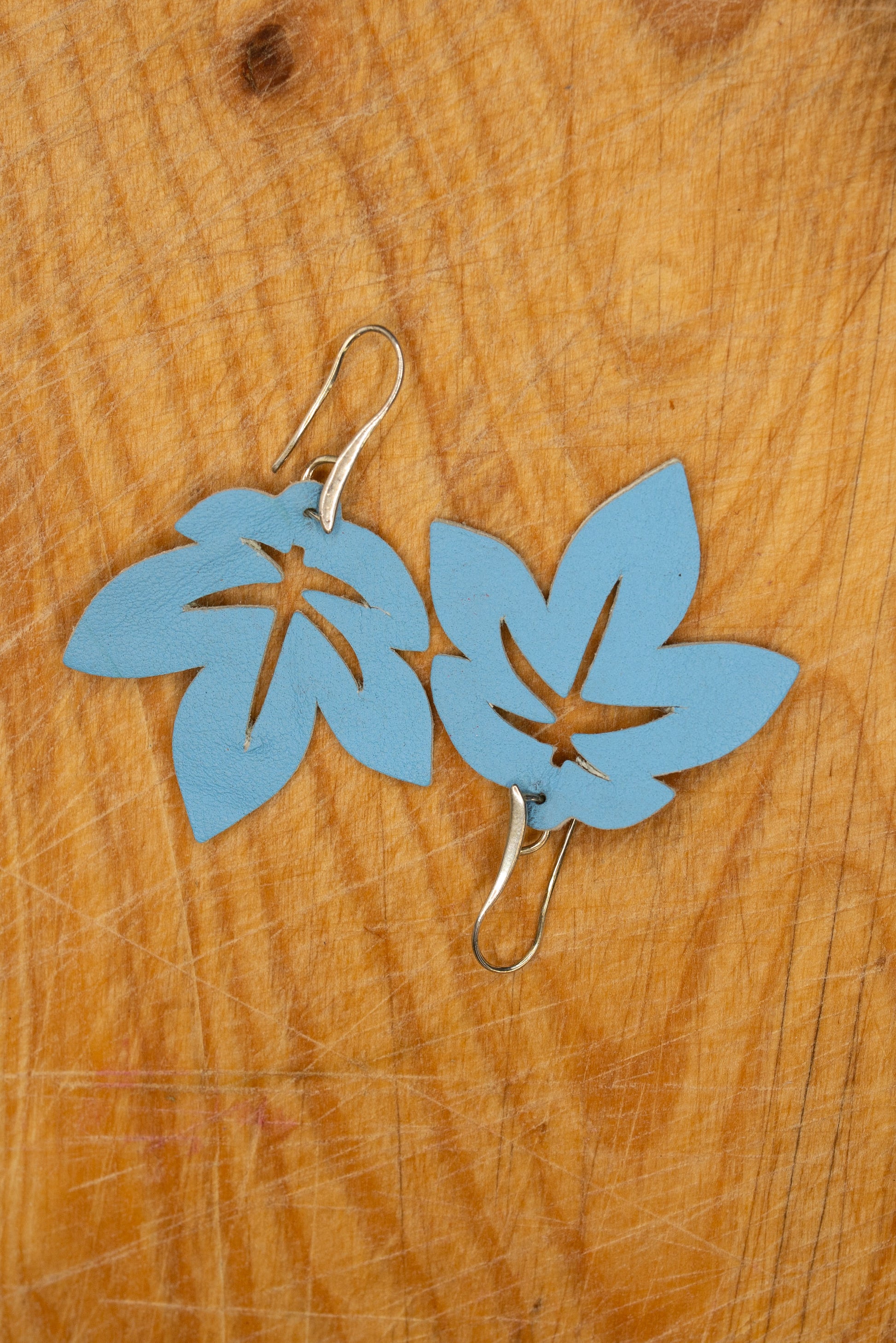 Håndlagde øredobber i lær, formet som lønneblader. De er inspirert av alle høstens toner og er et perfekt, enkelt tilbehør til antrekket ditt.